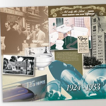 The Eljer work was part of their 100th anniversary celebration, in a hugely-popular calendar of the decades done for their distributors. This was a significant graphic design and production project that required multiple reprints due to demand.